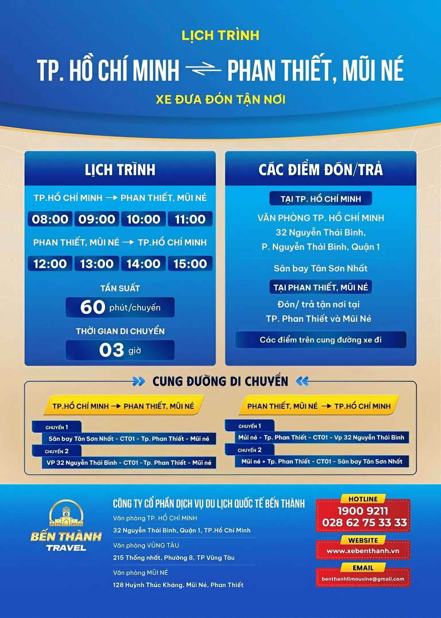Vé xe limousine Sài Gòn ⇔ Phan Thiết, Mũi Né