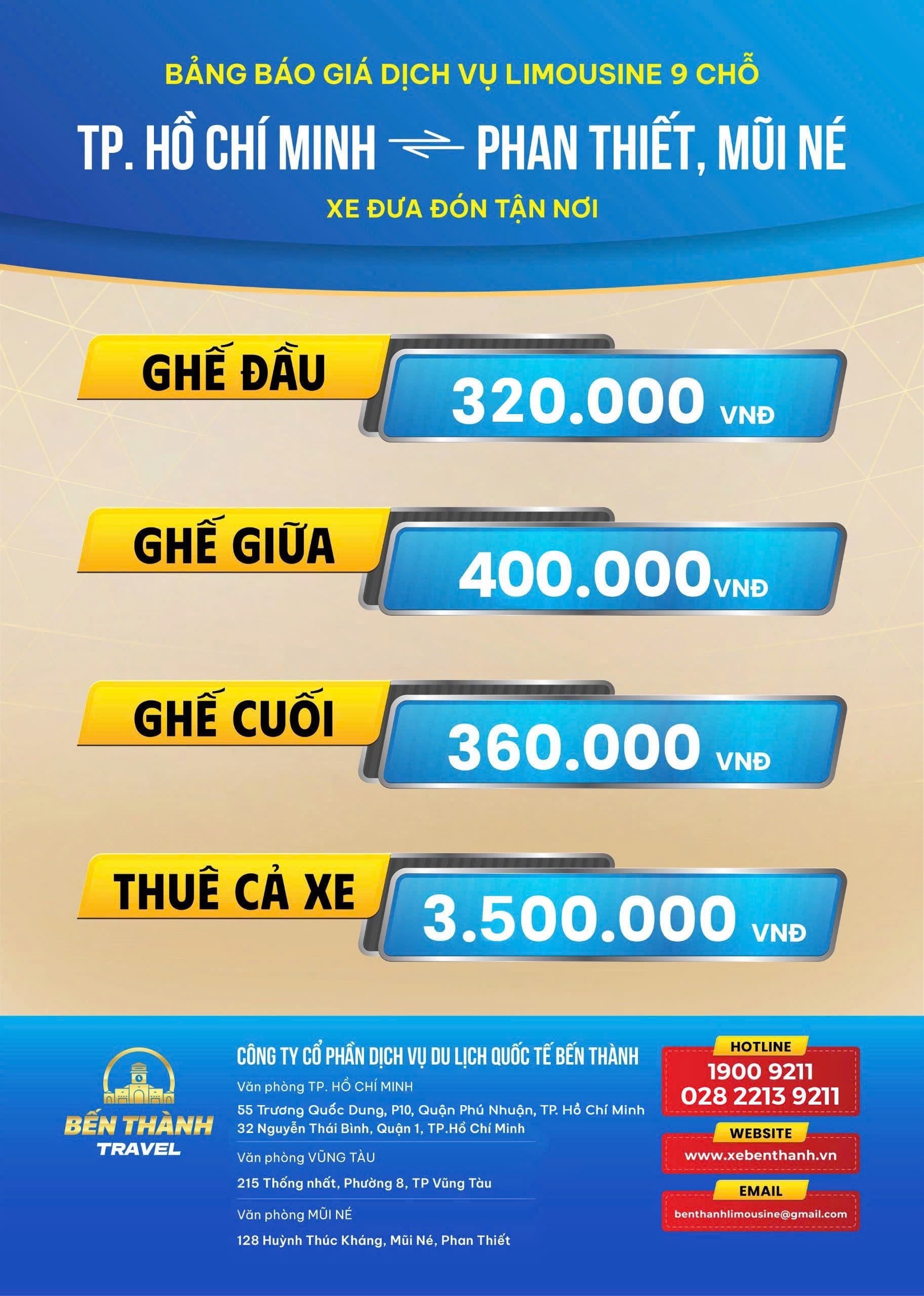 CÔNG TY CP DỊCH VỤ DU LỊCH QUỐC TẾ BẾN THÀNH tự hào là đơn vị vận tải hành khách uy tín, chuyên cung cấp vé xe limousine cao cấp trên hai tuyến chính: