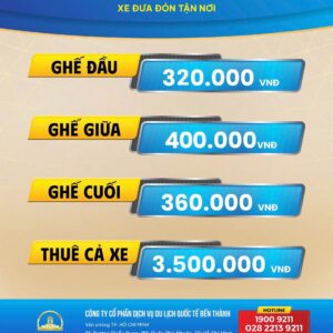 | Ghế Giữa | 400.000 đ | Phan Thiết, Mũi Né đi Sài Gòn:12h, 13h, 14h, 15h |